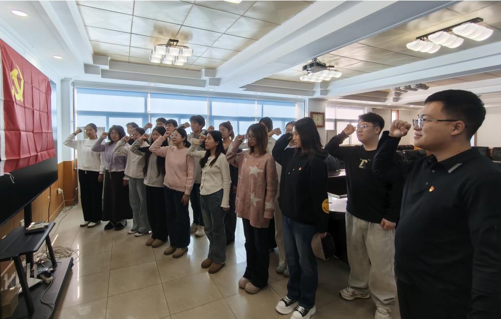 2025年12月9日,海洋资源与环境学院学生党支部在A301会议室隆重举行预备党员入党宣誓仪式。学院党委领导、入党积极分子代表及16名新发展的预备党员参加仪式。仪式由学生党支部书记李国伟主持。